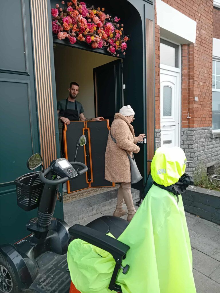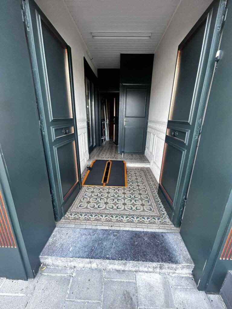 Accessible via a PRM ramp replacing the two steps at the entrance, and great news: you can ring the bell in front of the stairs and, a few minutes later, someone will come to install the ramps 🤩. There is no ♿ parking space, but you can park your car in front of the restaurant’s large window 😉