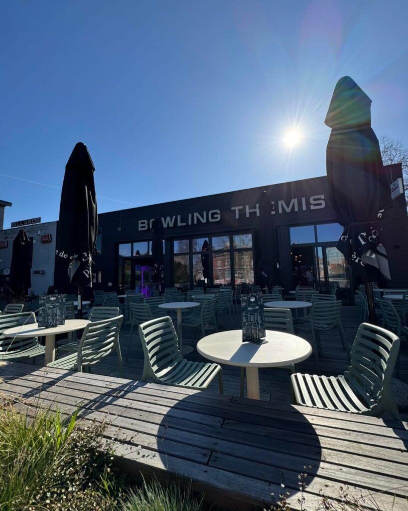 1 ♿ parking space opposite the bowling alley.