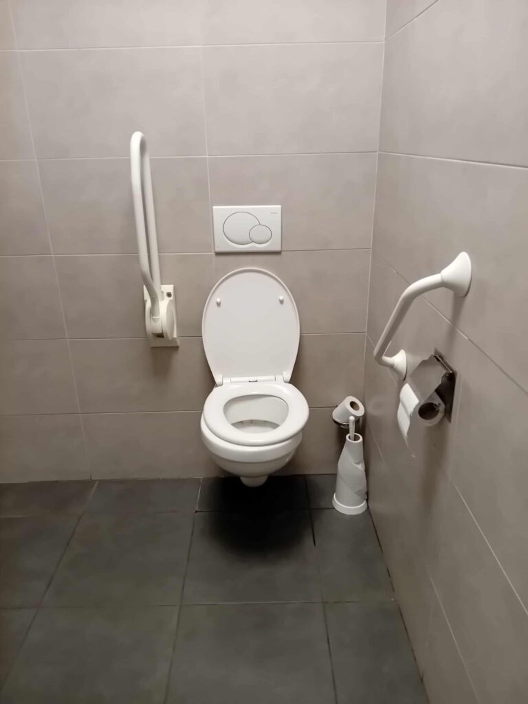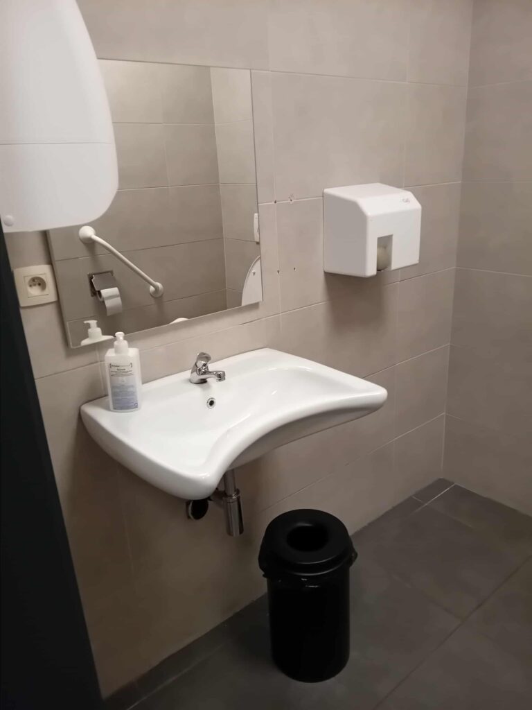 Wanneer je op Google Maps klikt, zie je dat er een parkeerplaats is voor personen met beperkte mobiliteit, maar niet vlak bij de ingang 🥲… nog een verzoek dat ik zal richten aan onze schepen, Simon Varrasse 😉