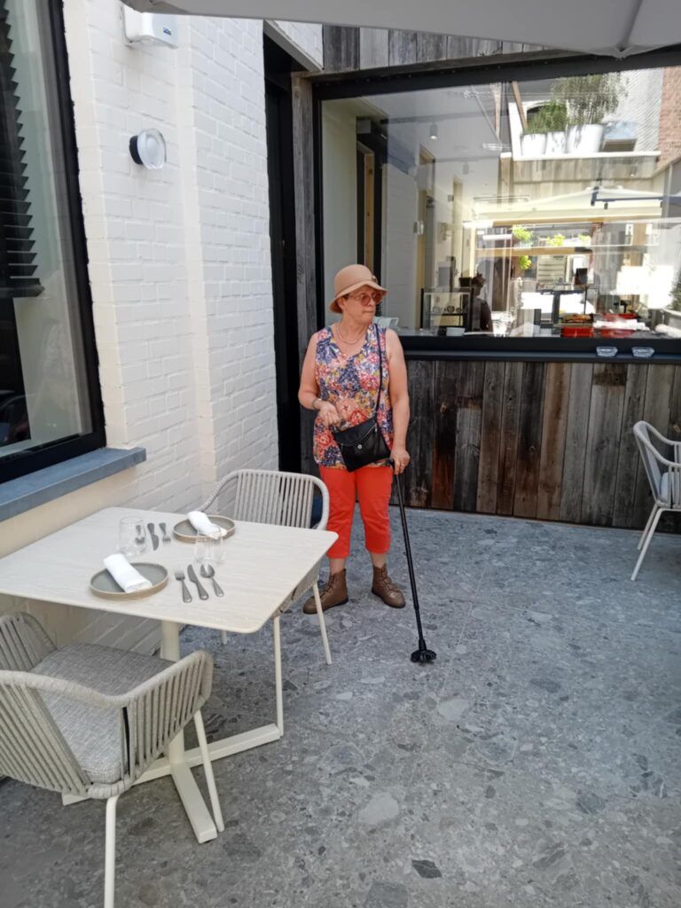 Beste PBM, geef bij het reserveren aan dat je een tafel nodig hebt op het benedenterras of aan de ingang, net voor het kleine trapje 😉